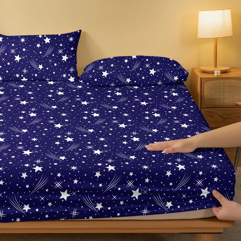 1 Simple modern Starry sky printed matte Fitted Sheet, bedroom printed bed cover, bedding (excluding pillowcases)